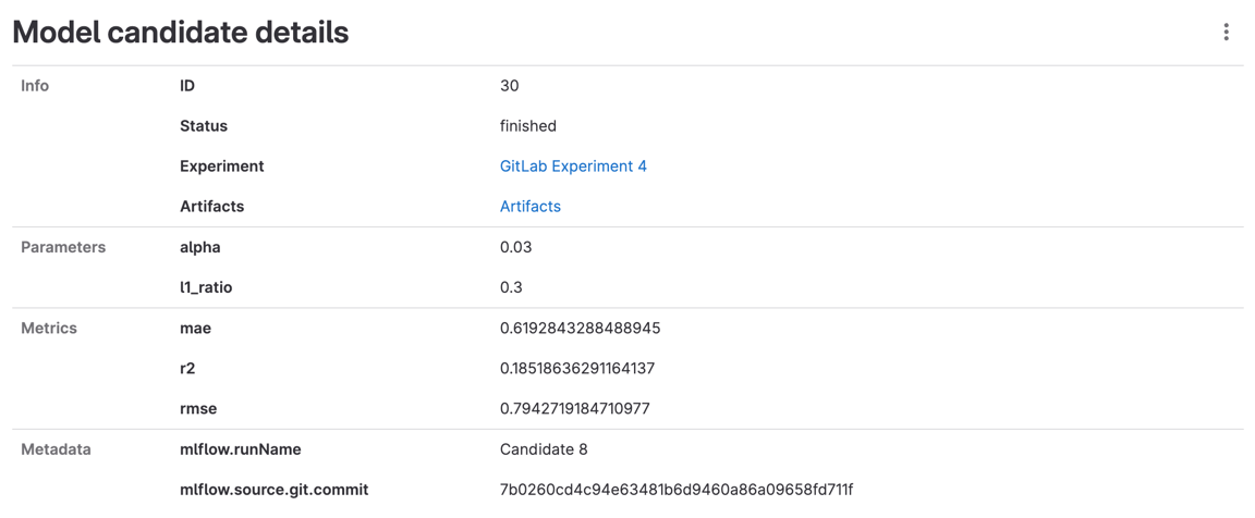 NOTE: Model experiment tracking is an experimental feature. Refer to https://gitlab.com/gitlab-org/gitlab/-/issues/381660 for feedback and feature requests.